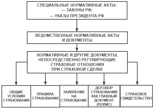Из приведенной схемы видно, что обеспечение страховых отношений в России начинает достаточно основательно разрабатываться в правовой системе РФ. Следует отметить, что предмет регулирования специальных нормативных актов более конкретен, чем предмет регулирования ГК РФ. Их терминология в большей степени привязана к конкретному виду деятельности, к тому же в них используется меньше общих понятий, требующих специального истолкования. Поэтому и применять их можно, не особенно опасаясь каких‑либо юридических каверз. Кроме ГК РФ и Закона РФ «Об организации страхового дела в Российской Федерации» существует много различных нормативных актов по конкретным видам страхования. Например, Кодекс торгового мореплавания, в котором целая гл. XII посвящена морскому страхованию. Издано большое количество нормативных актов о различных видах обязательного страхования. С другой стороны, лишь небольшое количество специальных нормативных актов регулирует поведение всех участников страховых отношений. Таким является, например, Закон о медицинском страховании. Но большинство специальных актов регулирует поведение либо только страховщиков – это акты, издаваемые страховым надзором, либо только страхователей – это акты об обязательном страховании. В силу п. 2 ст. 3 ГК РФ по отношению к этим актам, в том числе и федеральным законам, статьи Кодекса пользуются приоритетом. Однако из этого правила в гл. 48 установлено исключение из п. 2 ст. 3. Прежде всего речь идет о законах, указанных в ст. 970 ГК РФ. Эта статья исходит из того, что законы, регулирующие предусмотренные в ней отношения (речь идет о страховании иностранных инвестиций от некоммерческих рисков, морском страховании, медицинском страховании, страховании банковских вкладов и страховании пенсий), в иерархии источников страхового права стоят впереди норм ГК РФ. Соответственно, ст. 970 устанавливает, что к перечисленным в ней отношениям правила, предусмотренные гл. 48 ГК РФ, применяются «постольку, поскольку законами об этих видах страхования не установлено иное». При этом речь идет в равной мере как о специальных законах, посвященных соответствующим разновидностям страхования, так и о более общих законах. Определенные отступления от общего принципа, закрепленного в п. 2 ст. 3 ГК РФ, предусмотрены для некоторых отношений и за пределами ст. 970 ГК РФ. Это касается регулирования взаимного, а также обязательного государственного страхования. Так, пункт 3 ст. 968 ГК РФ предусматривает, что правила гл. 48 ГК РФ применяются к отношениям по страхованию между обществом взаимного страхования и его членами, «если иное не предусмотрено законом о взаимном страховании, учредительными документами соответствующего общества или установленными им правилами страхования». Еще более широкое отступление от норм ГК РФ допускает п. 4 ст. 969. Им установлено, что правила гл. 48 ГК РФ применяются, если иное не предусмотрено не только законами, но и «иными правовыми актами о таком образовании и не вытекает из существа соответствующих отношений по страхованию». В остальных случаях действует общее правило, закрепленное в ст. 422 ГК РФ: договор должен соответствовать обязательным для сторон нормам, установленным законами и иными правовыми актами. Помимо правовых актов, т. е. законов, указов Президента и постановлений Правительст