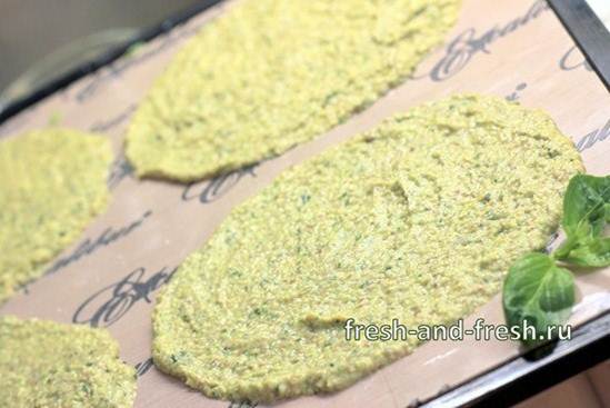 ремя в дегидраторе - около 2-3 часов. Дегидрация должна быть минимальной: проверяйте блинчики, чтоб не допустить их пересушивания, как только они начнут отделяться от листа, переверните их и посушите еще минут 15. Блины должны легко гнуться и сворачиваться в трубочку.
