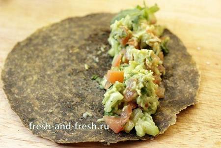 Для начинки: 1 спелый авокадо 1 большой помидор 1 огурец несколько листов салата и немного зелени (петрушка, укроп, кинза) для красоты и аромата Соль, идеально вкусная черная костромская