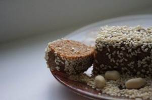 Вам потребуется: 100 гр кунжута 50 гр арахиса 100 гр фиников (мягких) кунжут для присыпки