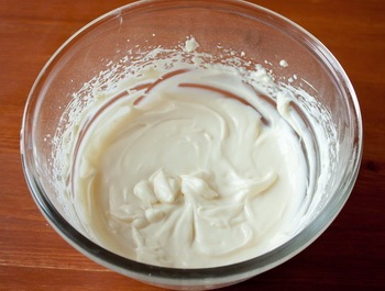 Ставим на огонь и держим, пока масло не растает. Отставляем в сторону и даем остыть примерно до 45-50 градусов.