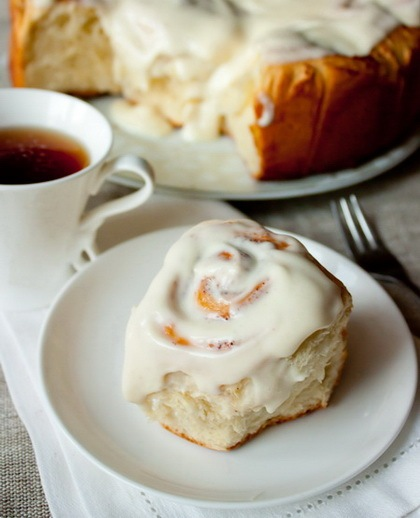 Вынимаем булочки из духовки, перекладываем на блюдо и смазываем кремом. Это нужно делать, пока булочки горячие.