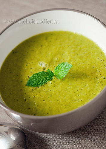 Ингредиенты (на 2 порции): Приготовление: 1. Нагрейте масло в большом сотейнике и обжарьте в нем лук на медленном огне до мягкости и золотистого цвета. 2. Выложите в сотейник нарезанный кубиками картофель, горошек, добавьте 1/4 ч. ложки соли и 1/4 ч. ложки черного перца, влейте бульон, доведите до кипения и варите на медленном огне до готовности картофеля. 3. Снимите суп с огня, добавьте мяту, лимонный сок и при помощи блендера измельчите до состояния пюре. Подавать на стол этот суп лучше с ложечкой нежирной сметаны.