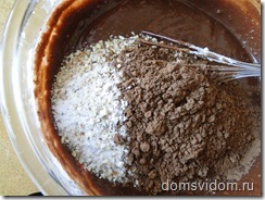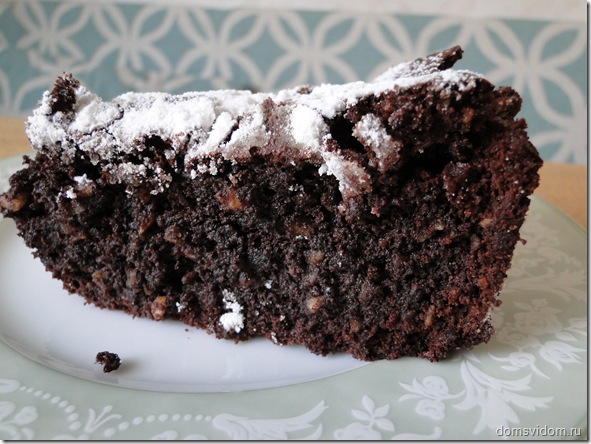 Ингредиенты: 300 г сахара; 300 г сливочного масла (теплое и мягкое, или растопить); 300 г горького шоколада (у меня был “Кр.октябрьский” - 4 плитки по 75 г); 150 г миндаль + фундук (перемолоть); 50 г порошка какао; 5 г разрыхлителя; 6 яиц; сахарная пудра для посыпки. Приготовление: