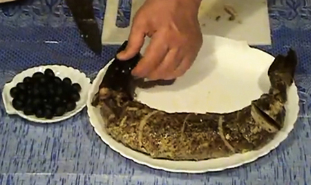 15. Прикладываем к нафаршированной коже очищенную и примытую голову.