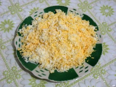Приготовление начинки: Плавленые сырки потереть на мелкой терке.