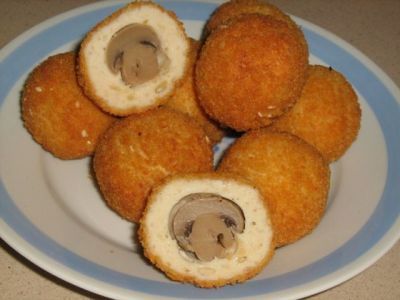 К крокетам можно подать грибной соус. Можно также подать крокеты как основное блюдо с овощным гарниром. */ Лучше готовить со свежими грибами (маленького размера), предварительно слегка обжарив их, - будет вкуснее!