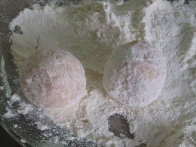 Залепить и скатать, образуя шарик - крокет.