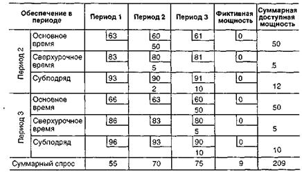 Затраты: основное время $60 за единицу сверхурочное время $80 за единицу субконтракт $90 за единицу Текущие затраты хранения $1 за единицу в месяц Затраты резервирования $3 за единицу в месяц Решение транспортной задачи методом линейного программирования с таблицей: