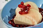 Гранаты очистить. Отложить 1 ст. л. зерен, остальные измельчить в блендере. Процедить, добавить оставшийся сахар, проварить 20 мин, остудить. Выложить бланманже на блюдо полить сиропом, посыпать гранатовыми зернами.