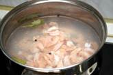 Этап 11. Ставим наш бульон, закладываем туда рыбьи головы и хвосты, морковку, петрушку, целую луковицу и клешни крабов. Даём бульону хорошо провариться.