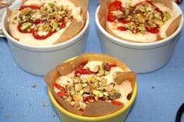 Этап 8. 8. Фисташки очистить и немного порубить, посыпать суфле сверху. Отправить готовиться в духовку на 30 минут. Подавать горячим!