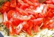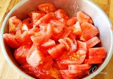 Этап 17. Освобождаем помидоры от кожицы, обдав их кипятком. Нарезаем их дольками.