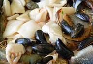 Этап 25. Затем берём креветки, мидии, крабов, кальмаров.