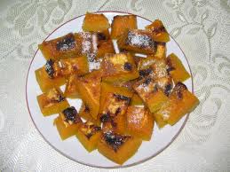 Очистите тыкву от кожуры и нарежьте большими кусками. Выложите кусочки в намазанную маслом сковороду или противень. Смешайте яйца с сахаром и молоком, добавьте корицу и хорошо размешайте. Залейте тыкву этой смесью. Пеките в хорошо нагретой духовке. Перед сервировкой посыпьте сахарной пудрой.