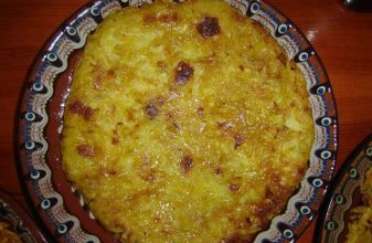 Продукты: 1 кг картофеля 2 головки репчатого лука 200 гр. брынзы 3 яйца 150 гр. подсолнечного масла сушеная садовая мята соль, молотый черный перец
