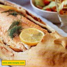Сверху бекон слоями. Поставить в духовку на 15 минут при температуре 250 градусов, чтоб зарумянился бекон. Потом залить молоком, чтоб покрывало почти всего «зайца» и убавить до 180 градусов. Держать еще 40-60 минут.