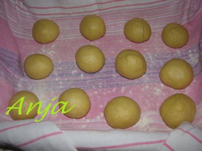 наш кусочек теста становится как мячик. И тогда наши булочки не расплываются а подымаются: