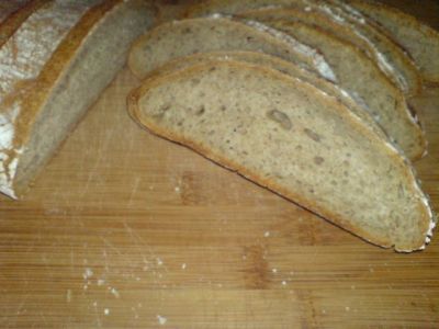 «Очередной хлебушек» Анютка!!! Вот и я! С очередным хлебушком, по твоему рецепту. Чем дальше продвигаешься, тем больше понимаешь, как сложно делать хлебушек (не всем дается). Вкус бесподобный, ничего подобного ни в Литве, даже в Киеве не пробовала. Какой-то особый, ни с чем не сравнимый!!!! Посмотри на фотку, где нарезанный, в правом верхнем углу, похоже хлебчик не совсем поднялся (ты не знаешь, где я снова промахнулась?). Пока понимаю, что формировать тесто с ржаной мукой не получается. Может муки мало, или воды много (но муку добавить боюсь, ты говорила, что тогда вкус хлеба хуже). Расплывается в стороны. А у тебя так красиво, вот что значит ручки тесто любят, а тесто тебя. Умница ты, вот что!!!!!! Спасибо тебе за терпение, с такими учениками как я. Я решила, буду бороться до победного конца, может постепенно что-то получится!