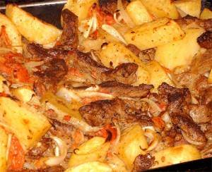 Картофель тушеный со свининой в мультиварке