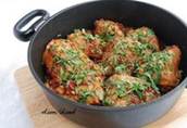 Чахохбили. Ингредиенты: ●1-1,3 кг курицы ●1 головка лука ●1 банка томат в собственном соку или 600гр. свежих помидор ●50-70мл. белого сухого вина ●2 ст. л. мелко порубленных грецких орех ●50 гр. сливочного масла ●1 пучок кинзы ●1 пучок петрушки ●2- 3 зубчика чеснока ●2 ч.л. молотого кориандра ●Соль ●красный молотый перец Приготовление: 1. Мясо курицы помыть, разрезать на кусочки, сложить в хорошо разогретую толстостенную кастрюлю и слегка обжарить. 2. Добавить сливочное масло, нарезанный кубиками лук, спассеровать лук до прозрачности, влить вино и немного потушить. 3. Добавить томаты,кориандр, соль, перец, если жидкости мало, долить немного кипятка и тушить на медленном огне минут 25-30 под закрытой крышкой. 4. Tем временем порубить орехи,мелко порубить чеснок, нарезать зелень. 5. Добавить чеснок и орехи в мясо, потушить ещё 3-5 минут. 6. Посыпать зеленью, перемешать, снять с огня и оставить минут на пять. Приятного аппетита!