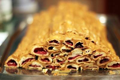 на тесто для торта: Для начинки торта: Для крема на торт: Приготовление: Достаем тесто из холодильника и делим его на 3 равных частей, а уже каждую часть на 6-5-4-3-2-1 части. Раскатываем прямоугольник размером 30х7см. Выпекать до золотистого цвета при 200 градусах. После того, как наши бревнышки для «Монастырской избы» готовы, займемся кремом. Смешиваем сгущенку и размягченое сливочное масло. Теперь складываем торт.Выкладываем 6х5х4х3х2х1. Каждый слой смазать кремом. Оставить на ночь в холодильнике,чтобы он пропитался