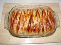 Нагреть духовку до 200 градусов С и выпекать около 50 минут. Если верх рулета начнет подгорать, то прикройте его фольгой. Готовый рулет можно есть как горячим, так и холодным.