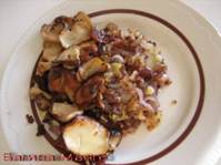 я больше люблю запекать рыбу. Рыба у меня была большая, я использовала в салат 3/4 рыбы и соответственно уменьшила количество остальных продуктов. Грибы для ускорения использовала не сухие, а шампиньоны. Сухие грибы предварительно замочить, промыть и отварить.