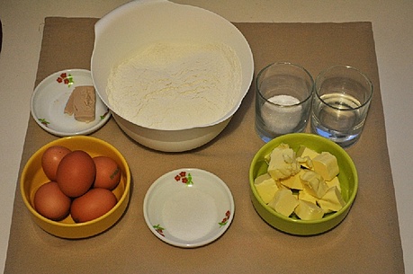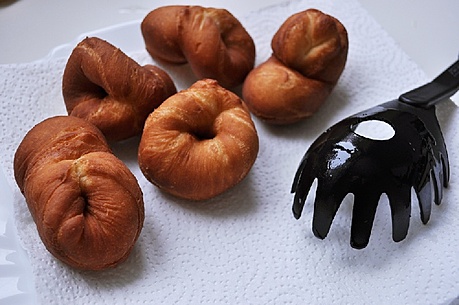 Франции. Там они bugnes и делаются в форме забавных узелков. Ингредиенты: 500 г муки, 18 г свежих дрожжей, 10 г соли, 5 яиц, 75 г воды и 200 г сливочного масла