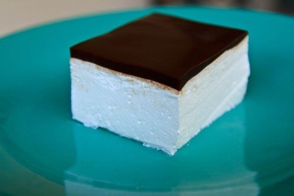 Вам потребуется: Для торта: Для глазури: Приготовление: 1. В небольшой кастрюле смешайте 2 пакетика желатина с 1 стаканом молока. Поставьте на средний огонь и взбивайте, когда от молока пойдет пар - снимите с огня (не кипятите!). Отставьте в сторону для охлаждения. 2. Смажьте стеклянную форму размером 20x30 см растительным маслом. В миске электрическим миксером на средней скорости взбейте 1 стакан сахара, сметану и сливки, пока все хорошо не смешается. 3. Продолжая взбивать, медленно добавьте теплую молочную смесь. 4. Сразу вылейте в подготовленную форму для выпечки. Пригладьте поверхность как можно более ровно. Накройте и поставьте в холодильник. 5. Для глазури в небольшой кастрюле смешайте какао-порошок, сахар и желатин. Взбивая, влейте воду и молоко. Поставьте на средний огонь и доведите до кипения, непрерывно помешивая. Смесь должна стать равномерной и гладкой. Отставьте глазурь в сторону и дайте остыть в течение 1 часа. 6. Медленно вылейте шоколадную глазурь на сливочную основу. Охладите в холодильнике как минимум 5 часов.