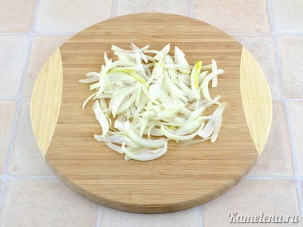 Приготовление: Лук почистить, порезать полукольцами.
