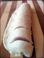 Булочки "Гусенички" Для начинки: Приготовление: Тесто разделить на шарики по 70 г весом – у меня их вышло 8 штук. Размер – как теннисный мяч. #колбасные_изделия@cook_good