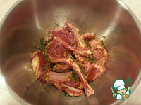 Описание: Этот рецепт очень любят мои домашние и все наши друзья благодаря нежному и весьма пикантному вкусу мяса, которое получается таким благодаря маринаду из соевого соуса и свежего имбиря. Обычно в такой маринад добавляют чеснок, но я решила поэкспериментировать и не ошиблась. Мясо получается просто великолепное. Количество порций: 4 Ингредиенты для "Каре ягнёнка": · Баранина (каре ягнёнка) — 1 кг · Соевыйсоус (Kikkoman less salt) — 100 мл · Мед — 50 мл · Горчица (зернистая) — 50 мл · Имбирь (корень) — 1 шт · Соль · Перец душистый · Розмарин