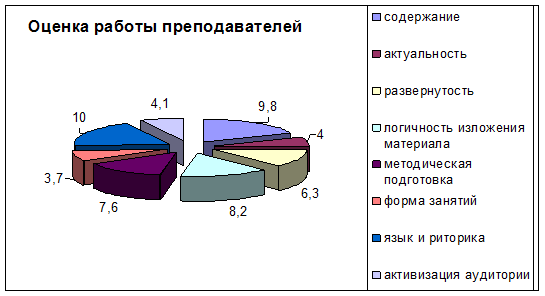 Из приведенной диаграммы видно, что форма занятий не устраивает большинство слушателей. 8. Работа преподавателей была оценена следующим образом (средний балл):