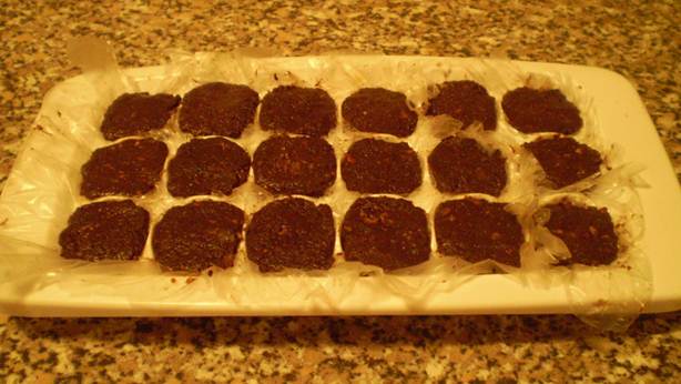 КЭРОБ СЫРОЕДЧЕСКИЙ Из кэроба можно приготовить очень вкусный, полезный, натуральный РЕАЛЬНЫЙ шоколад: - 1 стакан кэроба - ½ стакана меда - 1 ст. миндаля, смеленного в муку - ½ стакана ваших любимых орехов или семечек (мелко измельченных) - 2 ложки ванильного экстракта или немного мелко измельченной стручковой ванили (можно без него) - кокосовая стружка по желанию Все смешайте, залейте несколькими ложками воды или сыроедческого молока (можно и без него). Выложите на плотный полиэтилен, придайте некую форму и положите в морозилку на пару часов. Я брала формочки для льда, выложенные разрезанным полиэтиленовым кульком, и в углубления выкладывала шоколадную массу. Внутрь помещала целый орех фундук и в морозилку: