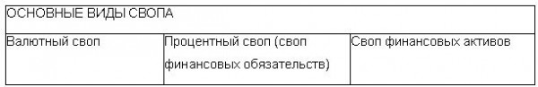 Рисунок 17.6. Основные виды свопа, отражающие предмет своповой сделки. Валютный своп характеризует обмен будущими платежами участников сделки в иностранной валюте. В рамках валютного свопа предприятие может осуществлять следующие основные виды своповых сделок: • покупку иностранной валюты на условиях "спот" с одновременным заключением контракта на ее продажу через определенный период времени на условиях "форвард"; • продажу иностранной валюты на условиях "спот" с; одновременным заключением контракта на ее покупку че-5 рез определенный период времени на условиях "форвард"; • обмен одной иностранной валюты на другую в на-; стоящем периоде с одновременным заключением контракта на ее обратный обмен в будущем периоде. Процентный своп (или своп финансовых обязательств) характеризует обмен будущими платежами участников сделки, связанными с привлечением и обслуживанием кредитов, эмиссией и обслуживанием облигаций и т.п. (сам процентный своп при этом кредитным соглашением не является). Эффективность такого обмена для каждого из участников сделки определяется тем, что в связи с различным уровнем кредитоспособности (их кредитным рейтингом) они формируют свои финансовые обязательства на своих финансовых рынках с различным уровнем процента (различной стоимостью привлечения заемных средств). Обмен видами платежей по обслуживанию долга позволяет при определенных условиях получать экономическую выгоду обеим партнерам по своповой сделке. В рамках процентного свопа (свопа финансовых обязательств) предприятие может осуществлять следующие основные виды своповых сделок: • обмен обязательствами по выплате процентов по фиксированной ставке на обязательства по выплате процентов по плавающей ставке; • обмен обязательствами по выплате процентов по плавающей процентной ставке на обязательства по выплате процентов по фиксированной ставке; • обмен обязательствами по выплате процентов по одному виду плавающей процентной ставки на обязательства по их выплате по другому виду плавающей процентной ставки. Процентный своп может обслуживать финансовые обязательства предприятия как в национальной, так и в иностранной валюте. Своп финансовых активов характеризует обмен будущими поступлениями платежей между участниками сделки от принадлежащих им активов (инвестиций в ценные бумаги, депозитов и т.п.). В отличие от процентного свопа, который позволяет участникам сделки снизить стоимость привлекаемого заемного капитала, своп финансовых активов позволяет им увеличить доходность инвестиций без соответствующего возрастания уровня их риска. Эффективность такого обмена для каждого из участников сделки также определяется относительными преимуществами каждого из них на различных финансовых рынках. В рамках свопа финансовых активов предприятие может осуществлять следующие основные виды своповых сделок: • обмен поступлениями от инвестиций по фиксированной процентной ставке на их поступления по плавающей процентной ставке; • обмен поступлениями от инвестиций по плавающей процентной ставке на их поступления по фиксированной процентной ставке; • обмен поступлениями от инвестиций по одному виду плавающей процентной ставки на их поступления по другому виду плавающей процентной ставки; • обмен поступлениями от инвестиций в одной ва