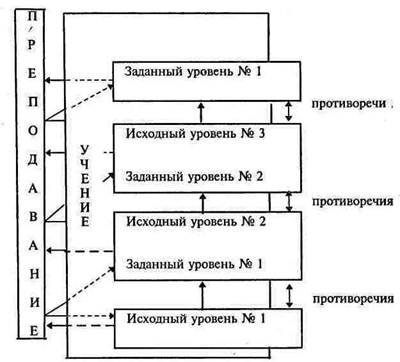 гичные определения "обучение" не раскрывают его сущность. Доказательством тому может служить хотя бы попытка охарактеризовать обучение как передачу человеку, ребенку определенных знаний, умений и навыков. На первый взгляд это утверждение может показаться верным: до обучения у ребенка знаний не было, после обучения они появились. Откуда взялись знания? От учителя. Он их дал обучающемуся. Но знания, умения, навыки — не физические предметы, их передать просто нельзя. Они могут возникнуть в голове ребенка, человека только в результате собственной активности. Их нельзя просто получить, они должны получаться в результате психической активности обучающегося и прежде всего мышления. Значит отношение "учитель — ученик" не может быть сведено к отношению "передатчик — приемник". Вряд ли можно согласиться и с другим определением понятия процесса обучения, согласно которому "процесс обучения - это целенаправленное взаимодействие преподавателя и учащихся, в ходе которого решаются задачи образования учеников* ("Педагогика*/ Под ред. Ю. К. Бабанского, изд. 2-е. М„ 1988. С. 339). Смысловая на* грузка в этом определении падает на "целенаправленное взаимодействие преподавателя и учащихся*. Но легко заметить, что указанное взаимодействие весьма неопределенно, аморфно, так как не указывает на механизм его реализации, а, следовательно, обходит саму сущность обучения как целостного педагогического явления. Вот почему составители сборника "Дидактические материалы к учебным курсам, изучаемым на ФППК ОНО". М., 1989, пытаясь избежать этого недостатка в определении понятия "обучение", предложили свое, которое сводится к следующему: "Процесс обучения на современном этапе... - это целенаправленная, взаимосвязанная, последовательно изменяющаяся деятельность учителя и учащихся, направленная на формирование системы знаний, основ научного мировоззрения, трудового и нравственного воспитания, творческой активности, обеспечивающих всестороннее развитие ученика" (с. 3). В этом определении акцент переносится не на учителя и учащихся как субъектов деятельностей, личностей, их взаимодействие, а на их целенаправленные, взаимосвязанные, последовательно развивающиеся деятельности. Обучение в этом определении выступает как деятельность, а процесс обучения как смена состояний системы деятельности, создаваемой самими людьми. Однако, сделав акцент на содержании самого процесса обучения, авторы упускают в этом определении одно существенное обстоятельство, а именно, что система деятельности в обучении не только создается самими людьми, но и существует не отдельно от них, а реализуется ими и через них. Она существует постольку, поскольку нужна для выпоп- нения определенных общественных целей. (Дидактика средней школы/Под ред. М. Н. Скаткина. - Изд. 2-е, М., 1982. С. 129). Содержанием обучения как процесса, на что справедливо обращает наше внимание В. К. Дьяченко в своих работах, является какая-то деятельность, которой в той или другой степени владеет обучающий и не владеет полностью или частично обучаемый (см. В. К. Дьяченко. Организационная структура учебного процесса и ее развитие. М., 1989. С. 44). Например, ученик овладевает каким-то ремеслом: столярным, плотницким, слесарным и другим. Работа столяра, плотника или слесаря для него становится целью и содержанием учения. То же можно сказат