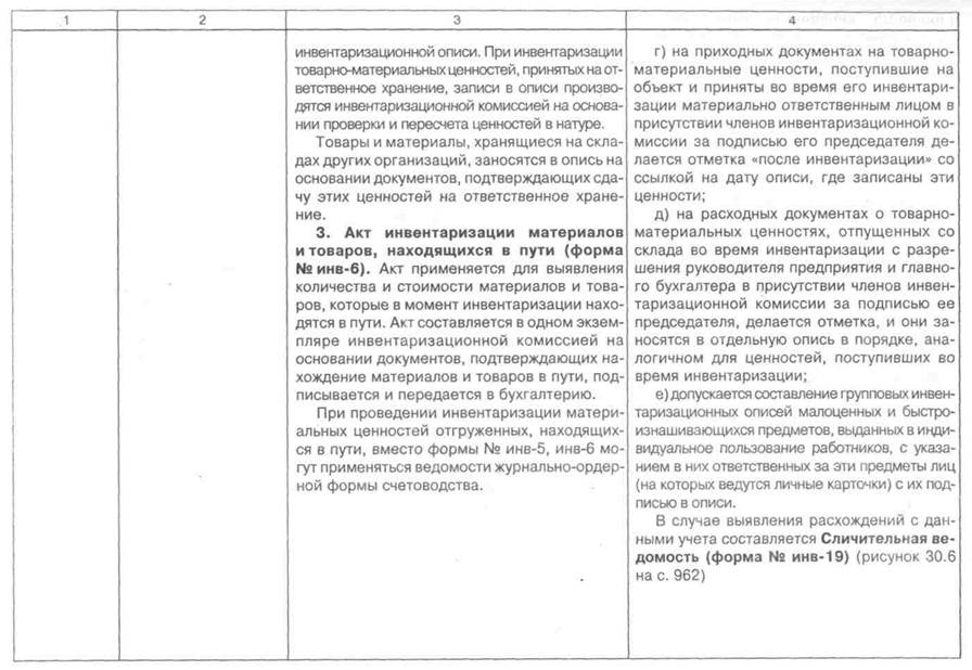 Особенности проведения инвентаризации тех или иных объектов, а также формы первичных документов, необходимые для оформления результатов инвентаризации приведены, в таблице 30.1 (см. с. 938 - 949). >