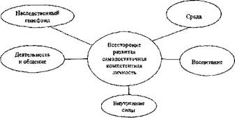 С современных научных позиций личность ребенка рассматривается и как объект, и как субъект воспитания. Объектом она является потому, что процесс ее формирования подвластен внешним влияниям, тем более целенаправленным, каким является воспитание. Субъектом - потому, что без активности личности, без активной реакции на внешние действия процесс развития не происходит; субъектом она является и потому, что многое в развитии человека происходит как процесс саморазвития и что в развитии личности большую роль играет самовоспитание (самостоятельная работа над собой в целях формирования определенных сторон, качеств личности, желаемых данному субъекту). Современные исследования утверждают, что талант не передается по наследству. Для наличия таланта, отмечает Н.И.Дубинин, необходима «нормальная универсальная генетическая программа»; чтобы реализовать ее колоссальный потенциал, необходимы оптимальные условия, особенно в ранний период развития личности. «Временем великих начал» называют ученые первые три - пять лет жизни ребенка! Все свойства внешних проявлений психики человека формируются прижизненно и поэтому управляемы со стороны родителей, педагогов, самого ребенка. Вопросы для самоконтроля 1) Раскройте понятие "личность" и ее структурные компоненты. 2) Охарактеризуйте основные понятия, связанные с формированием личности. 3) Дайте характеристику основным теоретико-методологическим подходам к развитию и формированию личности. 4) Раскройте основные факторы, влияющие на формирование личности. 5) Докажите, что воспитание и развитие связаны между собой. 6) Обоснуйте роль деятельности субъекта как ведущего фактора Литература 1. Бейсенбаева А.А. Теория и практика гуманизации школьного образования. Алматы: Гылым, 1998. 2. Божович Л.И. Личность и ее формирование в детском возрасте. М., 1968. 3. Измайлов А.З. Народная педагогика: педагогические воззрения народов Азии и Казахстана. М, 1991. 4. Керимов Л.К. Педагогические основы индивидуализации перевоспитания трудных подростков. Алматы, 1994. 5. Кон И.С. Психология подростка. М., 1981. 6. Кон И.С. Психология ранней юности. М., 1989. 7. Костюк Г.С. Движущие силы развития и воспитания. Хрестоматия по педагогике /Под ред. З.И.Равкина. М., 1976. 8. Петровский В.А. Личность - феномен субъективности. Ростов на Дону, 1993. 9. Рысбаева А.К. Успешность деятельности как категория педагогики. Алматы: КНПУ им. Абая, 2003.