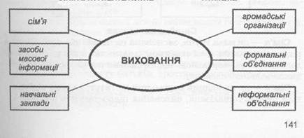 "Виховання, створене самим народом і засноване на народних починаннях, має ту виховну силу, якої немає в найкращих системах, збудованих на абстрактних ідеях або запозичених в інших народів" (Ушинський К.Д.) Система виховання - це сума впливу на психіку людини, спрямованого на підготовку її до побудови власного життя, участі у політичному, соціальному, економічному, духовному житті. Процес виховання - система виховних заходів, спрямованих на формування всебічно і гармонійно розвиненої особистості. Принципи виховання; - гуманізму; - демократичності; - пріоритетності загальнолюдських цінностей; - толерантності; - прогностичності. Основною метою національного вихова ння є: передавання молодому поколінню соціального досвіду, багатства, духовної культури народу, його національної меншості, своєрідності, світогляду і на цій основі формування особистісних рис громадянина України, які включають у себе національну самосвідомість, розвинену духовність, моральну, художньо-естетичну, правову, трудову, фізичну, екологічну культуру, розвиток індивідуальних здібностей і таланту. Напрями виховання: патріотичне; трудове; правове; фізичне; моральне; розумове; художньо-естетичне; статеве.