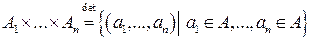 Множество степени n, где равно прямому произведению n-множеств.