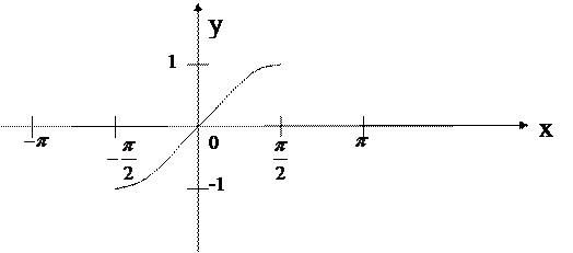 График функции arcsin симметричен графику функции сужения функции sin на относительно биссектрисы 1 и 3 координатных углов.