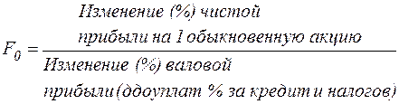 Сила воздействия финансового рычага показывает, на сколько изменится чистая прибыль на каждую обыкновенную акцию при изменении на 1% валовой прибыли. Эта формула важна для расчета сопряженного воздействия финансового и операционного рычагов с целью определения совокупного риска, связанного с предприятием.
