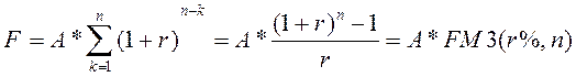 Аннуитет представляет собой частный случай денежного потока. Известны два подхода к его определению. Согласно первому подходу аннуитет - однонаправленный денежный поток, элементы которого имеют место через равные временные интервалы. Второй подход накладывает дополнительное ограничение, а именно, элементы денежного потока одинаковы по величине. Ускоренные методы оценки денежных потоков основаны на применении мультиплицирующих и дисконтирующих множителей, которые табулированы в специальных финансовых таблицах. Таблицы инвариантны по отношению к виду потока – постнумерандо или пренумерандо; оценки для потока пренумерандо отличаются от соответствующих оценок для потока постнумерандо на величину множителя (1+г), где r - ставка в долях единицы. Будущая стоимость срочного аннуитета постнумерандо (однократные поступление платежа и начисление процентов в базисном периоде)
