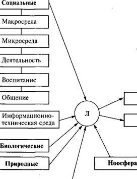 В целом личность как системное психическое образование человека выступает результатом сложного взаимодействия названных и других факторов и обстоятельств, которые представлены в ней, составляя ее содержательное наполнение и системно-структурное оформление. При этом и социальные, и биологические, и природные факторы своим содержанием не прямо перенесены в личность, а представлены в ней как бы в снятом виде (А. Н.Леонтьев), как отраженные в виде образов, представлений, понимания смысла, интересов и т.п. Определяющую роль в формировании личностных структур у человека играют социальная среда, культурологические факторы, совокупность их воздействий. Схема 7 Факторы формирования и развития личности