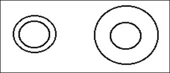 внутренний круг слева кажется больше правого внутреннего круга – это объясняется особенностями восприятия фигуры и фона (иллюзия Эббингауза).