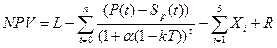 В случае рассмотрения иной формы инвестирования, слагаемые Однако априорная формула расчета NPV обладает существенным недостатком: даже скорректированная ставка дисконтирования, рассмотренная нами как изначально определенная величина, не является постоянной и детерминируемой величиной. Использование в формуле некоторой константы определяет модельный риск оценивания эффективности данной операции и снижает адекватность модели. Авторы книги [7.17.] указывают на тот факт, что после составления графика лизинговых взносов необходимо произвести следующие корректировки. 1. Необходимо корректировать общую сумму лизинговых платежей на индекс изменения цен на оборудование. Размеры лизинговых платежей должны учитывать фактические темпы инфляции. Индексирование лизинговых платежей производится в конце расчетного периода, отдельно за каждый год, по фактическому изменению цен на взятое в лизинг оборудование. 2. Корректируется базовая величина общей суммы лизинговых платежей в зависимости от эффективности использования взятого в лизинг оборудования. Важно, чтобы взятое в лизинг оборудование работало эффективно. Поскольку методика расчета лизинговых платежей, приведенная авторами книги учитывает уплаченный лизингодателем налог на добавленную стоимость, то предоставленная лизингодателю налоговая льгота фактически предоставляется так же и арендатору. Если же взятое в лизинг оборудование эксплуатируется неэффективно, то смысл предоставления государством такой льготы теряется. Важно определить, насколько увеличится стоимость лизинговых платежей в случае потери налоговой льготы. 3. Общая сумма лизинговых платежей должна учитывать воздействие, которое оказывает ускоренная амортизация оборудования на величину погашения арендной задолженности. Сумма ускоренной амортизации включается в лизинговый платеж, и, увеличивая его, приводит к перерасчету НДС и общей суммы лизингового платежа. Однако на стадии подготовки договора отсутствует знание о будущих ценах на оборудование или неопределенны какие-нибудь будущие показатели эффективности взятого в лизинг оборудования. Использование аналитических оценок этих параметров влечет увеличение модельного риска применения рассматриваемой методики для оценки эффективности. Ввиду композиции рисков самой расчетной формулы денежного потока и рисков, возникающих в статистических моделях получения этих оценок модель становится неадекватной.