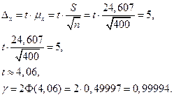 в) Найдем объем выборки, при которой те же границы для доли вкладов, полученные в пункте б), можно гарантировать с вероятностью 0,9876.