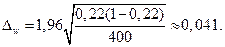 б) Найдем границы, в которых с вероятностью 0,95 заключена доля вкладов, размер которых менее 60 тыс. руб.