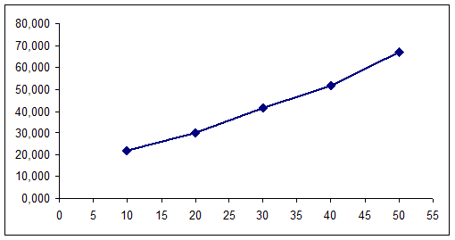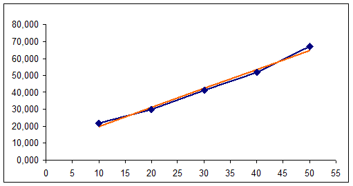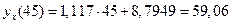 Используя соответствующее уравнение регрессии, определим среднюю стоимость произведенной продукции, если стоимость основных производственных фондов составляет 45 млн. руб.: